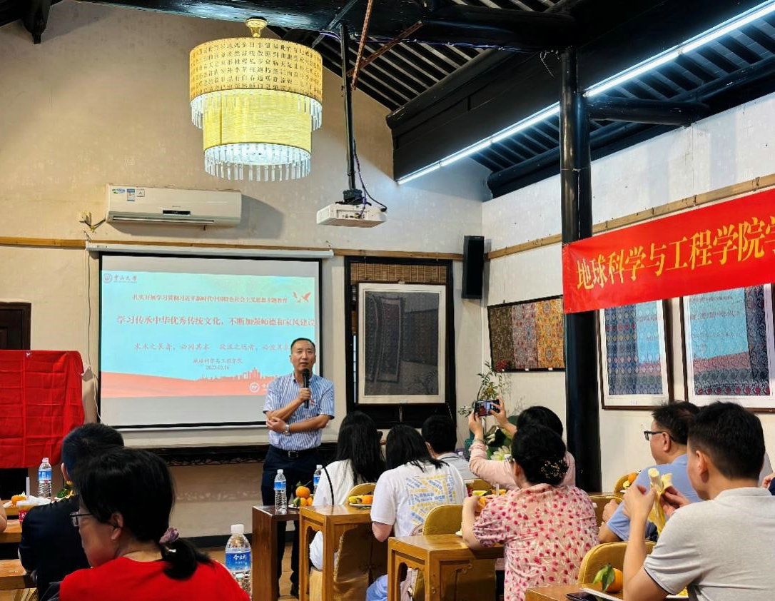 5月16日,前往中山詹園參觀學習,黨委書記何曉鐘做題為“學習習近平總書記弘揚中華傳統文化重要論述,加強師德和家風建設”專題報告