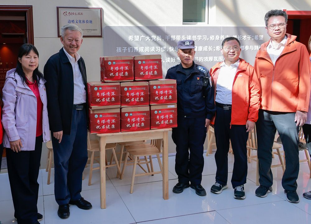 陳春聲書記、高松校長,醫院古小紅書記、林天歆副院長向紅其拉甫口岸邊防戰士贈送藥品