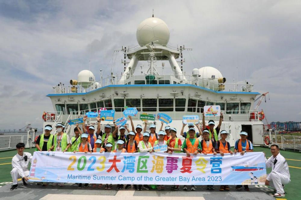 8月15日,來自粵港澳三地的40余名青少年齊聚“中山大學(xué)”號(hào)科考船,開展“啟航大灣區(qū) 繪就蔚藍(lán)夢(mèng)”2023年粵港澳大灣區(qū)海事夏令營(yíng)珠海分營(yíng)活動(dòng)。在科考中心黨支部宣傳委員、“中山大學(xué)”號(hào)船長(zhǎng)金德飛和探測(cè)部黨員代表的帶領(lǐng)下,小營(yíng)員們先后參觀了船舶的實(shí)驗(yàn)區(qū)、駕駛艙、生活區(qū)和甲板等區(qū)域,詳細(xì)了解船載先進(jìn)海洋調(diào)查和大幅向儀器設(shè)備,深入了解了我國(guó)海洋科考發(fā)展史、聆聽了船長(zhǎng)的遠(yuǎn)洋航海故事。