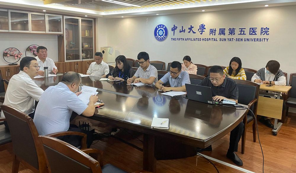 學校學習貫徹習近平新時代中國特色社會主義思想主題教育巡回指導五組組長漆小萍,附屬第五醫院黨委書記苗偉、院長單鴻等領導班子成員、黨委委員、全體黨支部書記、醫院主題教育領導小組成員等參加會議。