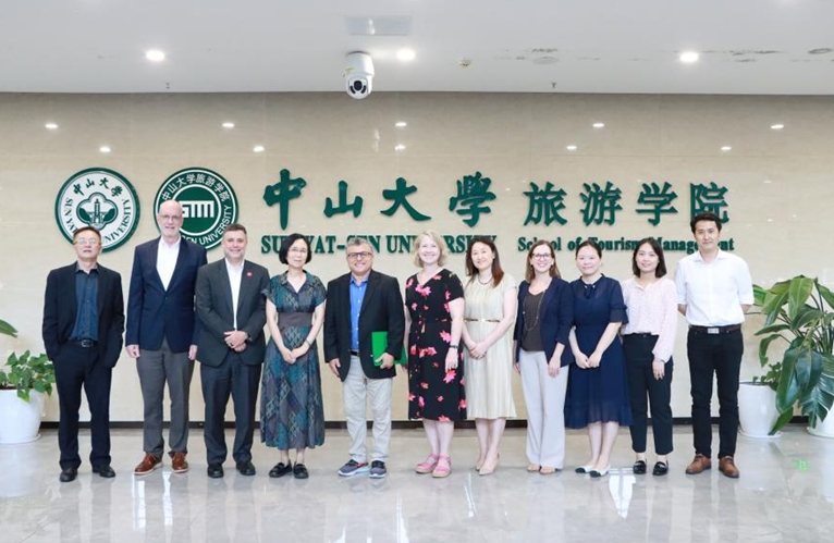 6月20日,代表團一行訪問廣州校區南校園并與中山大學常務副校長肖海鵬會面。肖海鵬對Chris Heavey教授一行的來訪表示熱烈的歡迎,并表示自2023年會面以來,雙方積極推動在國際中文教育、旅游與酒店管理等領域的合作,并簽署了兩校合作諒解備忘錄。相信雙方在上述領域有良好的合作前景,希望能夠加強聯系,推進務實合作。