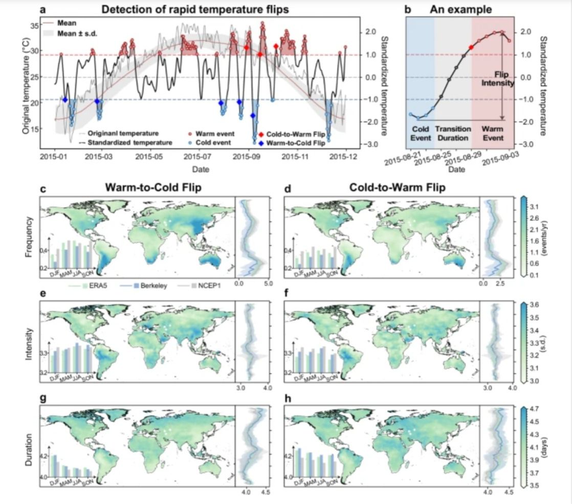 中山大學(xué)教授劉小平、羅明團(tuán)隊(duì)與中國(guó)科學(xué)院地理科學(xué)與資源研究所研究員裴韜團(tuán)隊(duì)合作,首次揭示了全球變暖背景下氣溫冷暖翻轉(zhuǎn)的新現(xiàn)象,即氣溫在幾天內(nèi)由異常偏暖快速轉(zhuǎn)變?yōu)楫惓F洌蛴僧惓F淇焖俎D(zhuǎn)變?yōu)楫惓F臉O端事件。近日,相關(guān)成果在線發(fā)表于《自然-通訊》。氣溫冷暖急劇交替的“過(guò)山車”式變化給社會(huì)和生態(tài)...