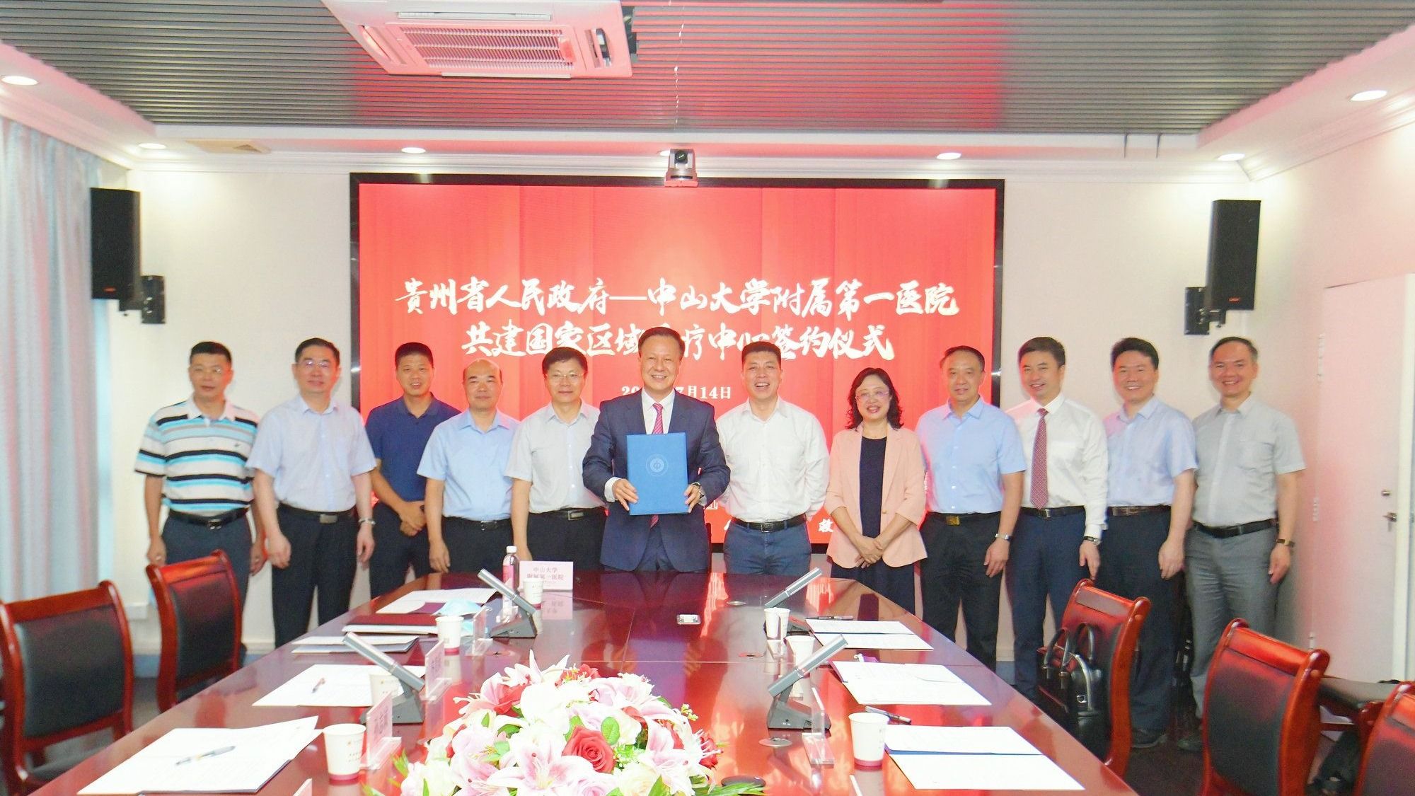中大新聞網廣州7月15日電(訊通員彭福祥、梁嘉韻)7月14日上午,中山大學附屬第一醫院與貴州省人民政府舉行線上簽約儀式,雙方將合作共建國家區域醫療中心——中山大學附屬第一醫院貴州醫院。貴州省人民政府副省長王世杰、副省長蔡朝林,中山大學常務副校長、中山大學附屬第一醫院院長肖海鵬,黨委書記駱騰,廣東、貴州兩省相關單位負責同志出席簽約儀式。