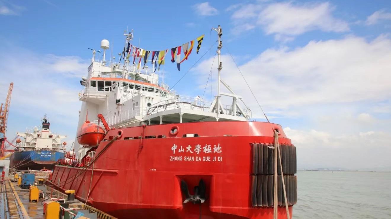 中大新聞網廣州10月1日電(記者邱清萌、曹寧、吳立堅)9月30日,“中山大學極地”號極地破冰多用途船命名儀式在廣州文沖船舶修造有限公司碼頭舉行。中山大學黨委書記陳春聲教授,中國科學院院士、中山大學校長高松教授一同為該船點睛,高松校長為“中山大學極地”號正式命名,行擲瓶禮,希望她“承擔起面向世界科技前沿的重擔,承托起人類極地海洋的求索夢想!破冰遠航、天空海闊,順遂平安!”