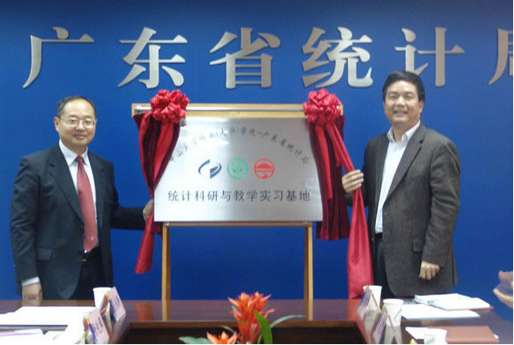 On the morning of March 3, Lingnan (University) College, Sun Yat-Sen University—the unveiling ceremony of the Statistics Bureau of Guangdong Province’s Statistics Research and Teaching Practice Base was held at the Statistics Bureau of Guangdong Province. Director Xing Xiaowei of Statistics Bureau of Guangdong Province, deputy director Peng QIpeng, dean Shu Yuan and vice dean Li Shenglan of Lingnan College, vice dean Hu Jianxun and Cheng Yuehua of School of Mathematics & Computational Science, professor Xu Xianxiang, professor Xia Nanxin and professor Zhou Xianbo of Linnan College, professor Wang Xueqin of School of Mathematics & Computational Science as well as directors of different departments of Statistics Bureau of Guangdong Province attended the unveiling ceremony.