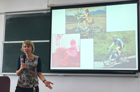 Ms. AJ Betts is an author, teacher and speaker. Reading and writing have been part of her life since childhood. She published her poem at the age of 11. In the lecture, she brought her third book Zac & Mia, winner of the 2014 Ethel Turner Prize for Young People's Literature. It was inspired by her work teaching at a children's hospital. She is also a bike enthusiast and draws much of her writing inspiration from cycling. She encouraged the students to get out into the natural world.