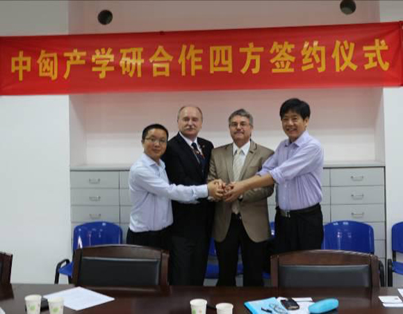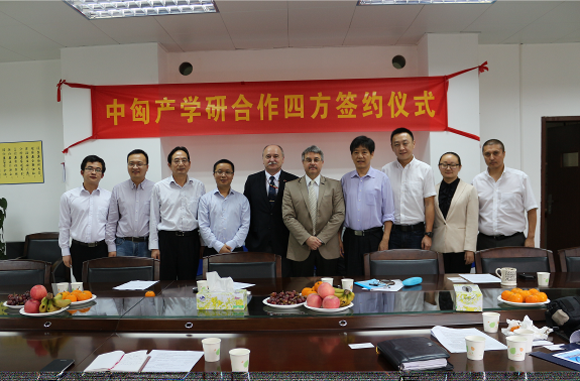 During the signing ceremony, Prof. Ke Zhang, Mr. Tamás Nádasi, Mr. Jinyong He and Dr. Béla Jakab delivered speeches for each party. A meeting was held after the ceremony, and the development of hot groundwater in Longmen as well as possible cooperation were discussed.