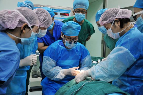 Prof. Wang Zhichong demonstrating a lacrimal surgery