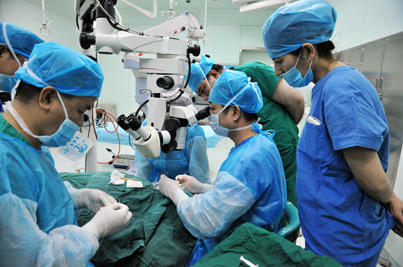 Prof. Yu Minbin demonstrating a glaucoma surgery
