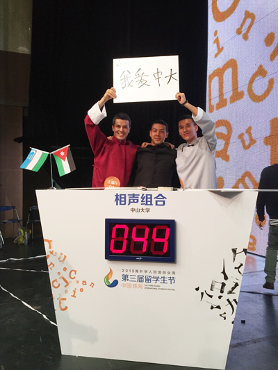 SYSU Crosstalk Group: Tillaev Dilshodbek (left), Alshare Mustafa Fatehi Mohammad (middle), Odilov Farkhod (right)