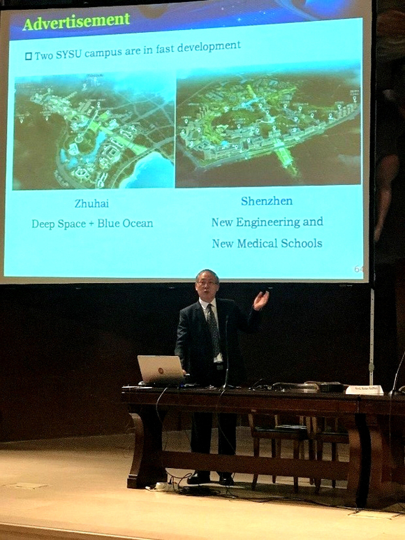 President of Sun Yat-sen University (SYSU), Professor Luo Jun, was invited to attend the Fifteenth Marcel Grossmann Meeting on Recent Developments in Theoretical and Experimental General Relativity, Astrophysics and Relativistic Field Theories (MG15) to deliver a plenary talk on the TianQin Project on July 4, 2018. He also took the opportunity to host a reception, “SYSU Connection”, in the night of July 3 to share his vision on the future of SYSU and the current development status with the scholars from around the globe. He cordially sent his invitations to overseas outstanding young scholars to join SYSU. The reception has received favorable feedback.