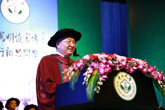 The university anthem was produced in 1924 when SYSU was founded. Its lyric was written by Zou Lu, the first president of SYSU, and its composer was Chen Hong. Afterwards, the song was revised as a result of collective wisdom. Cheng Huanwen, Professor of the School of Information Management and Chief Librarian of SYSU Libraries, participated in the revision work. He hopes the graduates will continue reading and study, and make progress in their career.