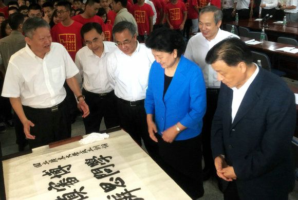 Liu Yunshan viewing the university motto written by Dr. Sun Yat-sen