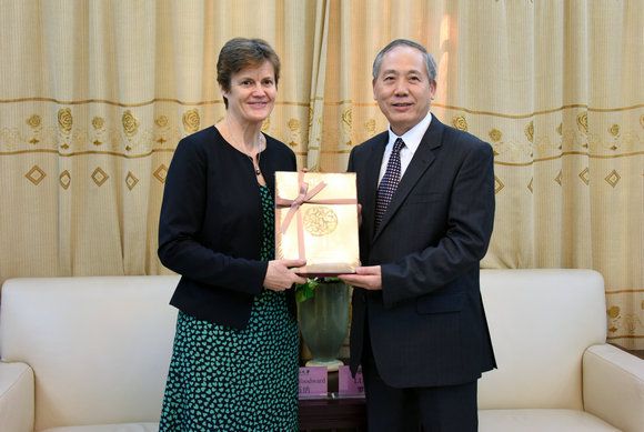 On the afternoon of November 30, 2015, Ms Barbara Woodward CMG OBE, British Ambassador to the People's Republic of China, visited Sun Yat-sen University (SYSU). Professor Luo Jun, President of SYSU, met with the guests. Mr. Matthew Rous, Consul-General of British Consulate General Guangzhou; Professor Gan Yang, Dean of Liberal Arts College of SYSU; Professor Tong Qingsheng from Liberal Arts College of SYSU; and Ms. Xu Yao, Deputy Director of Office of International Cooperation & Exchange of SYSU, were also present at the meeting.