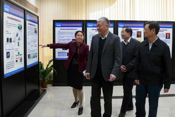 Mr. Wang Zhigang and Mr. Chen Yunxian visiting the State Key Laboratory of Optoelectronic Materials and Technologies