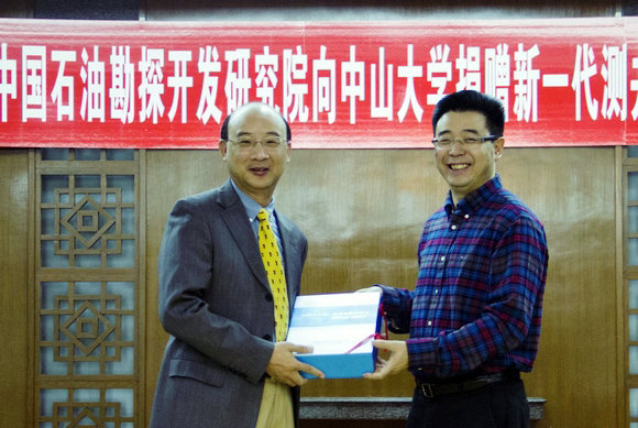On November 5, the Research Institute of Petroleum Exploration and Development (RIPED) donated a new generation of well-logging software CIFLog to Sun Yat-sen University (SYSU). The donating ceremony was held in Zhongshan Building on South Campus of SYSU. Prof. Zou Caineng, Vice President of RIPED; Prof. Li Ning, Deputy Director of Department of Well-logging and Remote Sensing Technology of RIPED; Prof. Li Mengfeng, Vice President of SYSU; and Prof. Sun Xiaoming, Deputy Dean of School of Marine Sciences of SYSU; attended the ceremony.