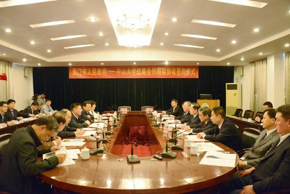 A scene of Xiamen-SYSU strategic cooperation seminar