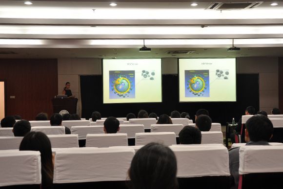 In the afternoon, Professor Joseph Puglisi and Assistant Professor Elisabetta Viani respectively gave a lecture on “Dynamics of Protein Synthesis” and "Initiation of HIV Reverse Transcription" in the Medical Sciences Building on North Campus. The lectures, moderated by Professor Gao Song from Sun Yat-sen University Cancer Center, were well received with frequent interactions between the speakers and the audience.