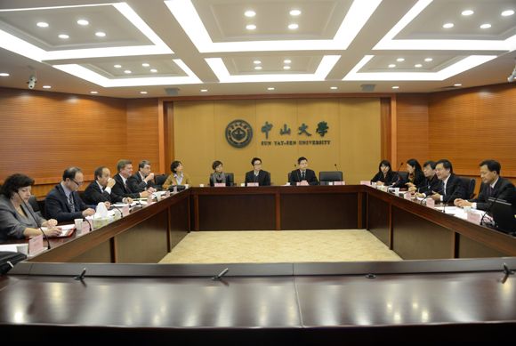 On December 10-11, a 7-member delegation led by Dr. Nasser Paydar, Executive Vice Chancellor of IUPUI, visited SYSU. The members included Dr. Gil Latz, Associate Vice Chancellor for International Affairs of IUPU, Prof. William Blomquist, Dean of School of Liberal Arts, Prof. David Russomanno, Dean of Purdue School of Engineering and Technology, Dr. Sara Grethlein, Associate Dean for Undergraduate Medical Education, Indiana University School of Medicine, Prof. Yaobin Chen, Chair of Department of Electrical and Computer Engineering, Purdue School of Engineering and Technology, and Prof. Joe Xu, Director of Confucius Institute. The main purpose of the visit was to attend the first meeting of the Cooperative Development Committee. Prof. Chen Chunsheng, Executive Deputy Secretary and Vice President of SYSU, and Prof. Yan Guangmei, Vice President of SYSU, met with the delegation on different occasions.