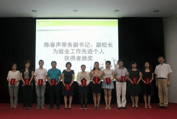 The conference summarized and analyzed the employment work for SYSU graduates in the past two years and commended the units and individuals that won the Outstanding Group Award and Outstanding Individual Award in the 2011-2013 student career counseling work. Secretary Zheng Detao, Executive Deputy Secretary and Vice President Chen Chunsheng presented the plaques and certificates to the winners.