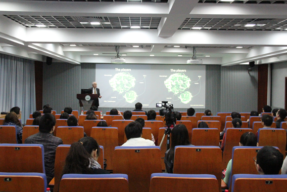 Pro-Vice-Chancellor William James delivered a lecture entitled “HIV-1 infection and neutralization: The infection of macrophages by HIV-1 and its inhibition by aptamers” on North Campus. He explained to the teachers and students in SYSU the process of how HIV infected macrophages. By ingeniously employing pluripotent stem cells as a research tool and coherently raising and solving scientific issues, he demonstrated the beauty of scientific exploration and broadened their horizons. The teachers and students were deeply impressed by his humorous and vivid speech. After the lecture, Professor William James patiently answered the questions raised by the audience. The students’ active participation in Q&A also left a good impression on Pro-Vice-Chancellor William James.