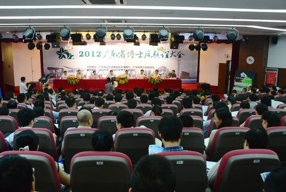 On October 25, the 2012 Meeting of Guangdong Postdoctoral Association was held in the Chinese Hall of SYSU. The meeting was jointly hosted by Department of Human Resources and Social Security of Guangdong Province and Guangdong Postdoctoral Association and organized by Sun Yat-sen University. The meeting is aimed at publicizing the achievements in science and technology innovation and serving for economic and social development made by postdoctoral researchers in Guangdong, encouraging academic exchange between them and promoting the sound and rapid development of Guangdong's postdoctoral cause. Xiao Zhiheng, Executive Vice Governor of Guangdong Province, Zheng Detao, Secretary of SYSU Party Committee, Ou Zhenzhi, Deputy Director of the Organization Department of the CPC Guangdong Provincial Committee and Director-General of the Department of Human Resources and Social Security of Guangdong Province, Liu Lianjun, Deputy Director of the Office of National Postdoctoral Administrative Committee, attended and addressed the meeting. Yang Shaosen, Deputy Secretary-General of Guangdong Provincial People's Government was also present at the activity. Postdoctoral fellows and staff from postdoctoral mobile stations at Sun Yat-sen University, South China University of Technology, Jinan University and other postdoctoral stations within Guangdong Province, representatives from the Bureau of Human Resources and Social Security of Guangzhou, Shenzhen and Foshan, a total of over 380 people participated in the meeting.
