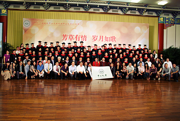 A group photo of the graduates of class of 1977 & 1978 in academicals with SYSU leaders and teachers