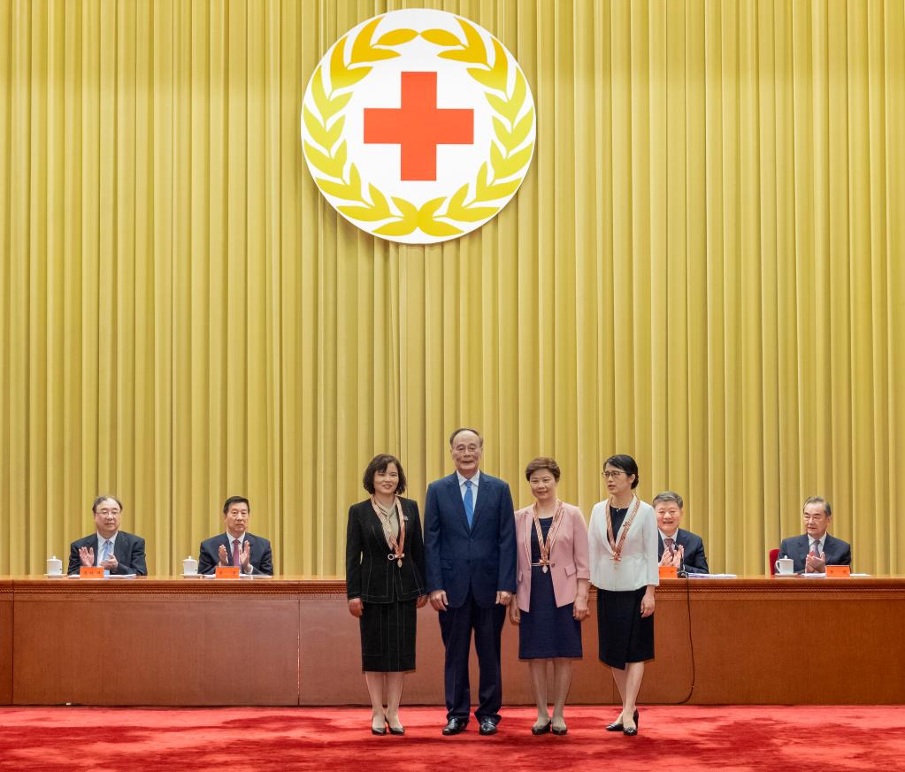 Wang Qishan, Chinese vice president and honorary president of the Red Cross Society of China (RCSC), presented the medals to the nurses at a ceremony at the Great Hall of the People in Beijing.