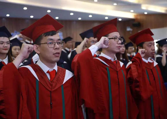 The ceremony started with the solemn national anthem. Deputy Dean Wang Ning read the graduation precept written by Dr. Sun Yat-sen, all graduates rose to listen and replied “obey the instructions”.