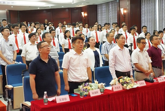 The ceremony started with the solemn national anthem. Deputy Secretary Xu Yao read the graduation precept written by Dr. Sun Yat-sen. All graduates rose to listen to the graduation precept.
