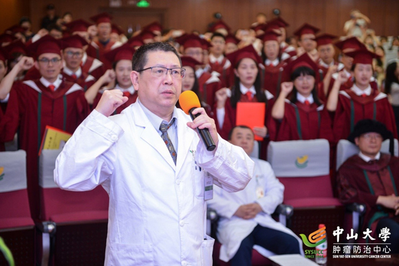 The ceremony was presided over by Secretary Wu Shaoxin. He led all graduates to sing the national anthem. He read the graduation precept written by Dr. Sun Yat-sen, and encouraged the graduates to pursue excellence in clinical work and climb summits in scientific exploration.