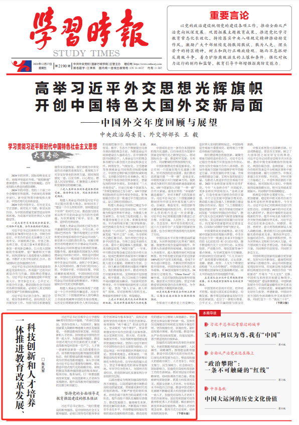 12月27日,《學習時報》頭條刊發中山大學黨委書記朱孔軍署名文章《一體推進教育改革發展、科技創新和人才培養》。全文如下: