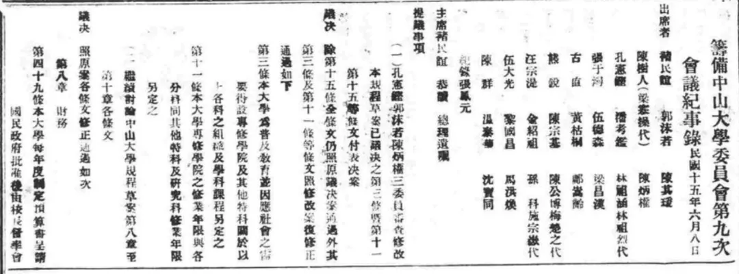 1926年6月8日,籌備中山大學委員會第九次會議紀錄