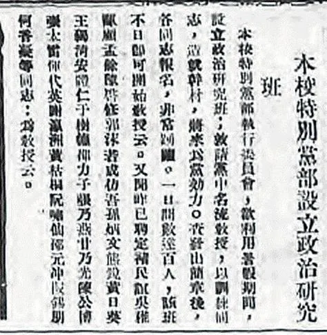 《本校特別黨部設立政治研究班》(《國立廣東大學周刊》1926年第57期)