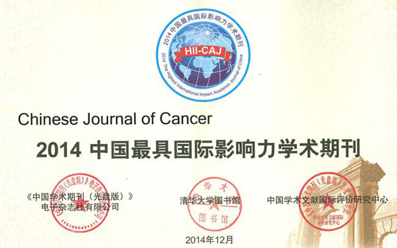 The Chinese Journal of Cancer is awarded with “The Highest International Impact Academic Journal of China” in 2014