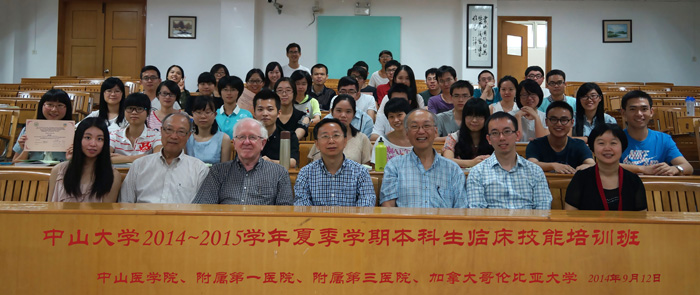 Zhongshan School of Medicine (ZSSOM) at Sun Yat-sen University (SYSU) invited four experienced Canadian professors from the University of British Columbia (UBC) to offer a “Clinical skills training session” in the summer of 2014. About 60 students from the 8 year program of clinical medicine participated in the training.