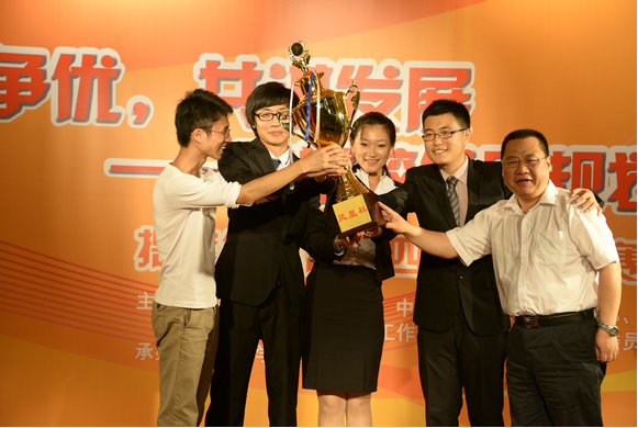 Deputy Secretary Zhu Kongjun presenting award to the team that wins the "Phoenix Cup"