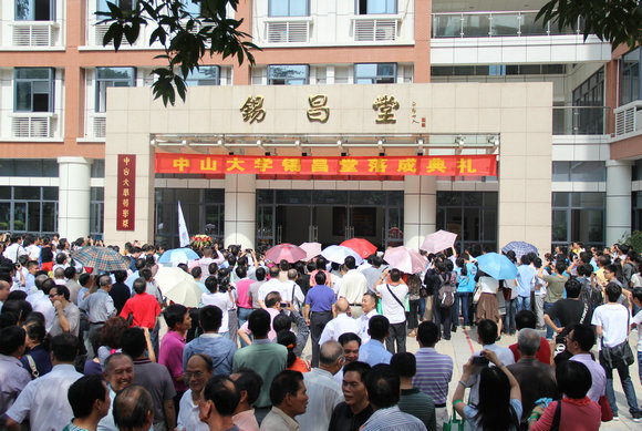 Shek Cheong Hall is a generous gift for the alma mater given by Mr. Chau Shek Cheong on November 12, 2004, on the occasion of the 80th anniversary of Sun Yat-sen University. After the site selection, the foundation laying ceremony of Shek Cheong Hall was held in October, 2007. During the process of construction, Mr. Chau’s company was thrown into a hard situation under the attack of the global financial crisis in 2008. However, he never gave up, “I will bite the bullet because I must do what I have promised.” When being asked whether there was a regretful thought during such a hard time of construction, Mr. Chau answered without hesitation that “I never regretted!” Because of his determination and belief, and with the support form the university leaders, Mr. Chau overcame all the difficulties and survived the financial crisis. Shek Cheong Hall resumed construction in November, 2009 and was completed in December, 2012.