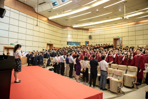 Dean Xue Desheng extended congratulations to all graduates and expressed gratitude to the teachers and parents. He said that the ideal for every university student should not be restricted to the individual, and instead, the students should turn their eyes to the country and the society. He hoped that all graduates would properly deal with the relationship between individual and society, between setback and growth, between position and responsibility. He encouraged the students to inherit the fine tradition of the School such as being firmly rooted, not afraid of difficulties and willing to make contributions, establish great ideals, and use what they have learned to change the world and benefit the society in the future.
