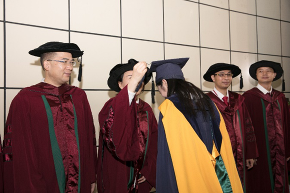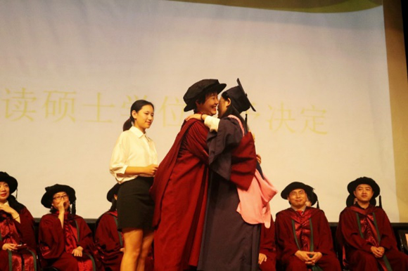 The postgraduate supervisors turned the tassel for every degree recipient and presented them with a graduation booklet. The postgraduates went onto the stage one by one, and took a photo with the supervisor. The supervisor and the postgraduate warmly embraced each other, and tears came out of their eyes. The supervisors were proud of their students who were about to work in different places. Their friendship touched everyone on the scene.